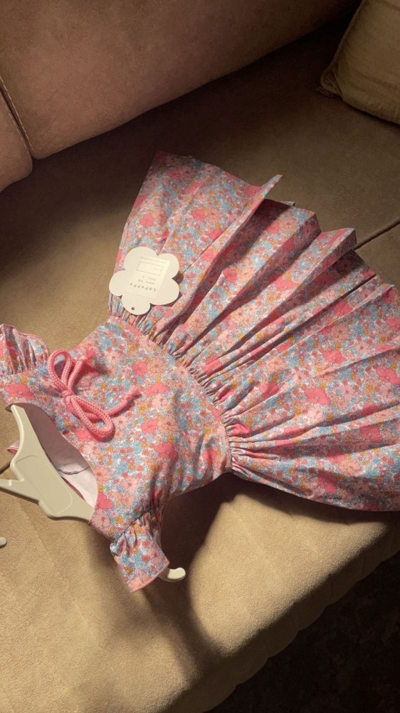 فستان ناعم ومتناغم للطفوله بقماش بطبعة الأزهار وفتحة الظهر مع ربطة شريطة تعطي اناقة اكثر نفذ في اسبانيا براند امتات