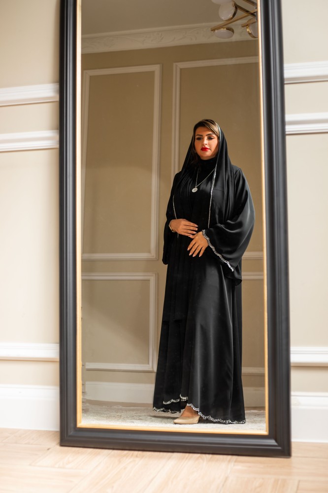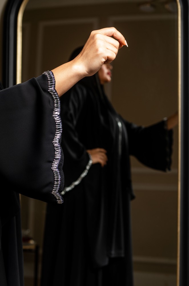 عباية بقماش نواعم مطرزه بالخرز تطريز يدوي